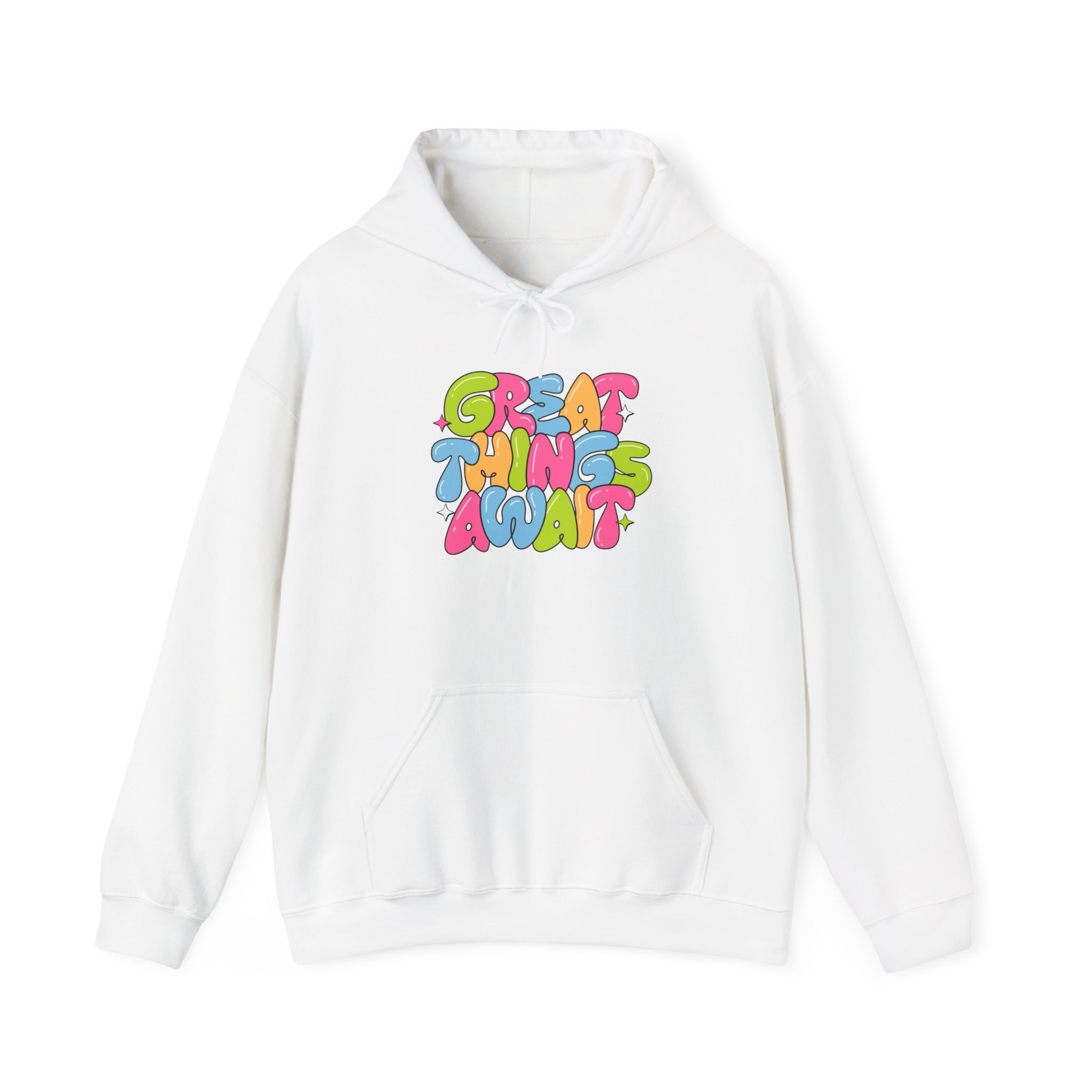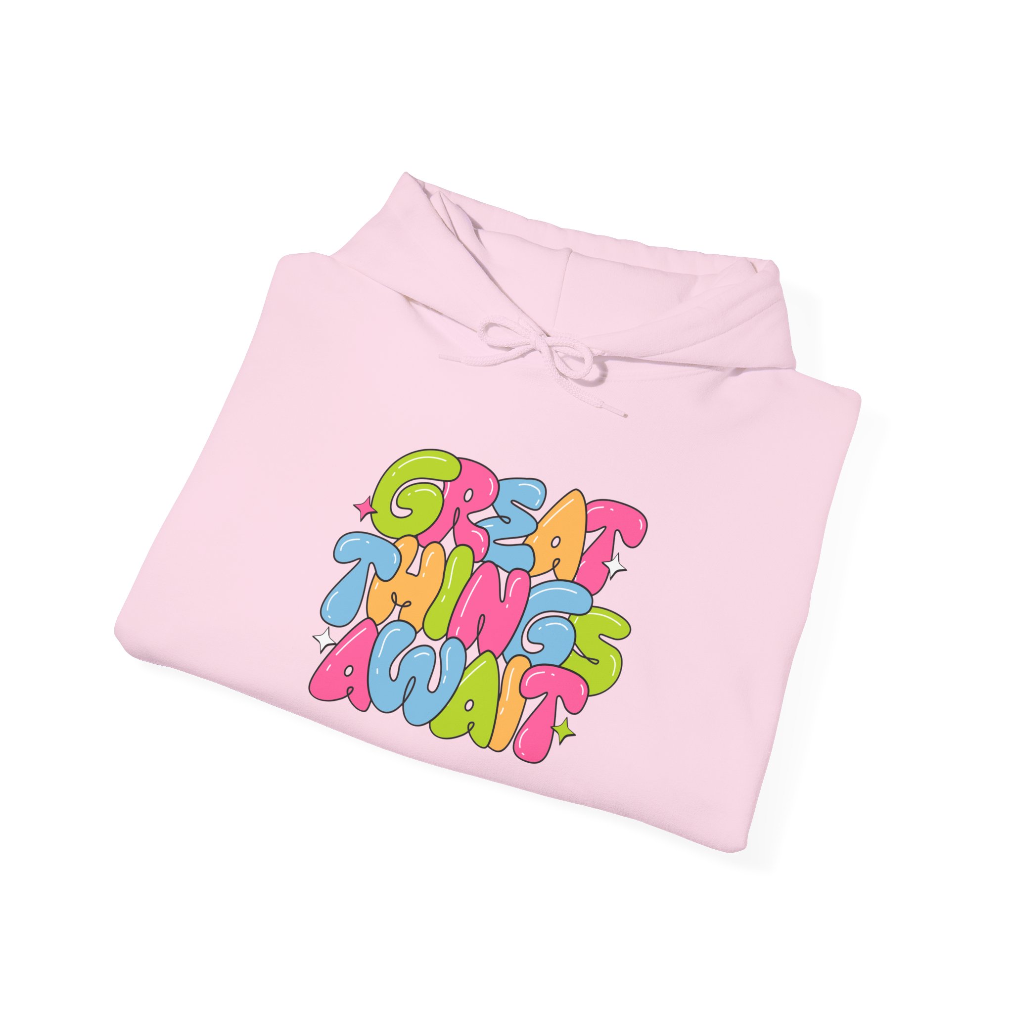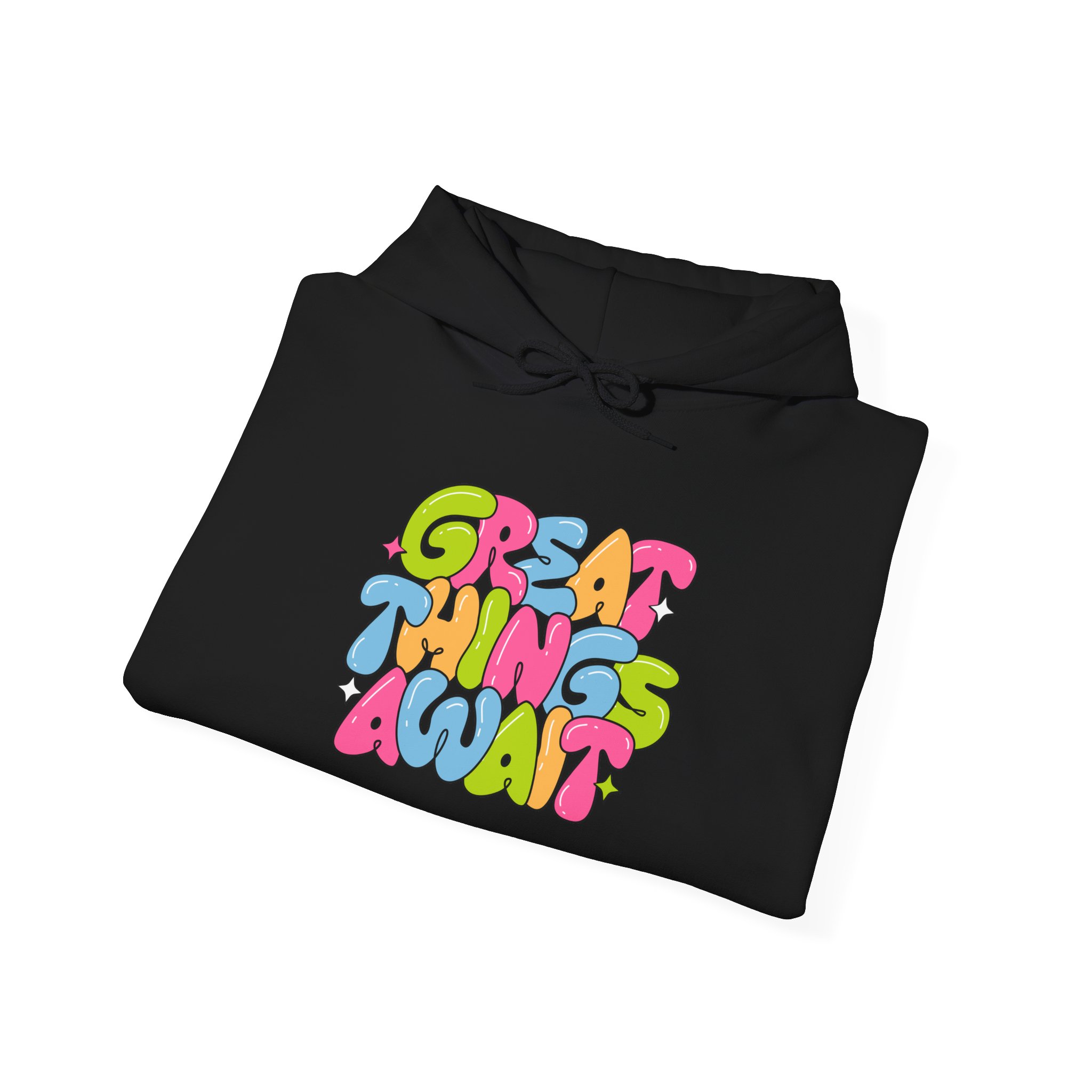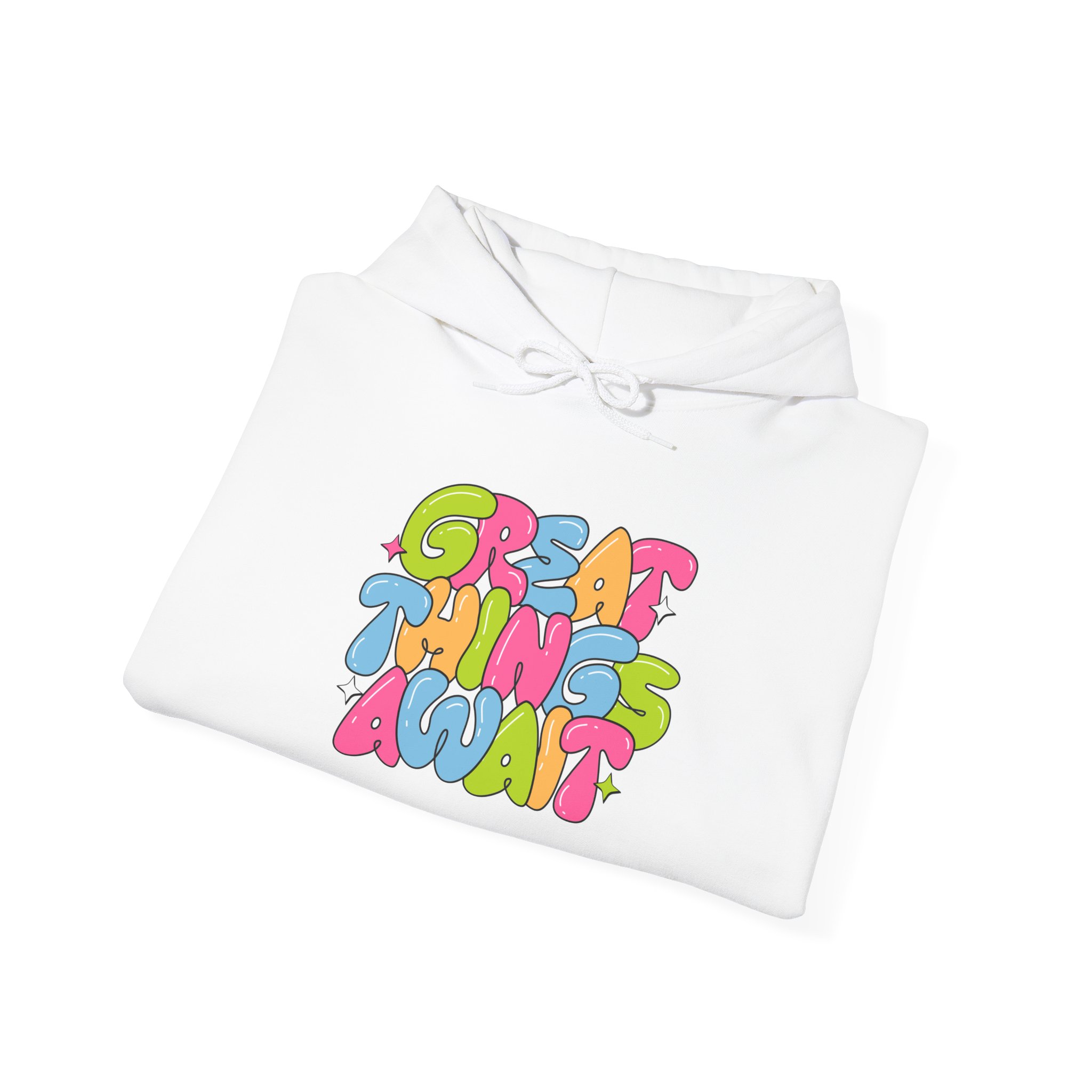 Hoodie — Colorful ‘Great Things Await’ Positive Graphic Pullover